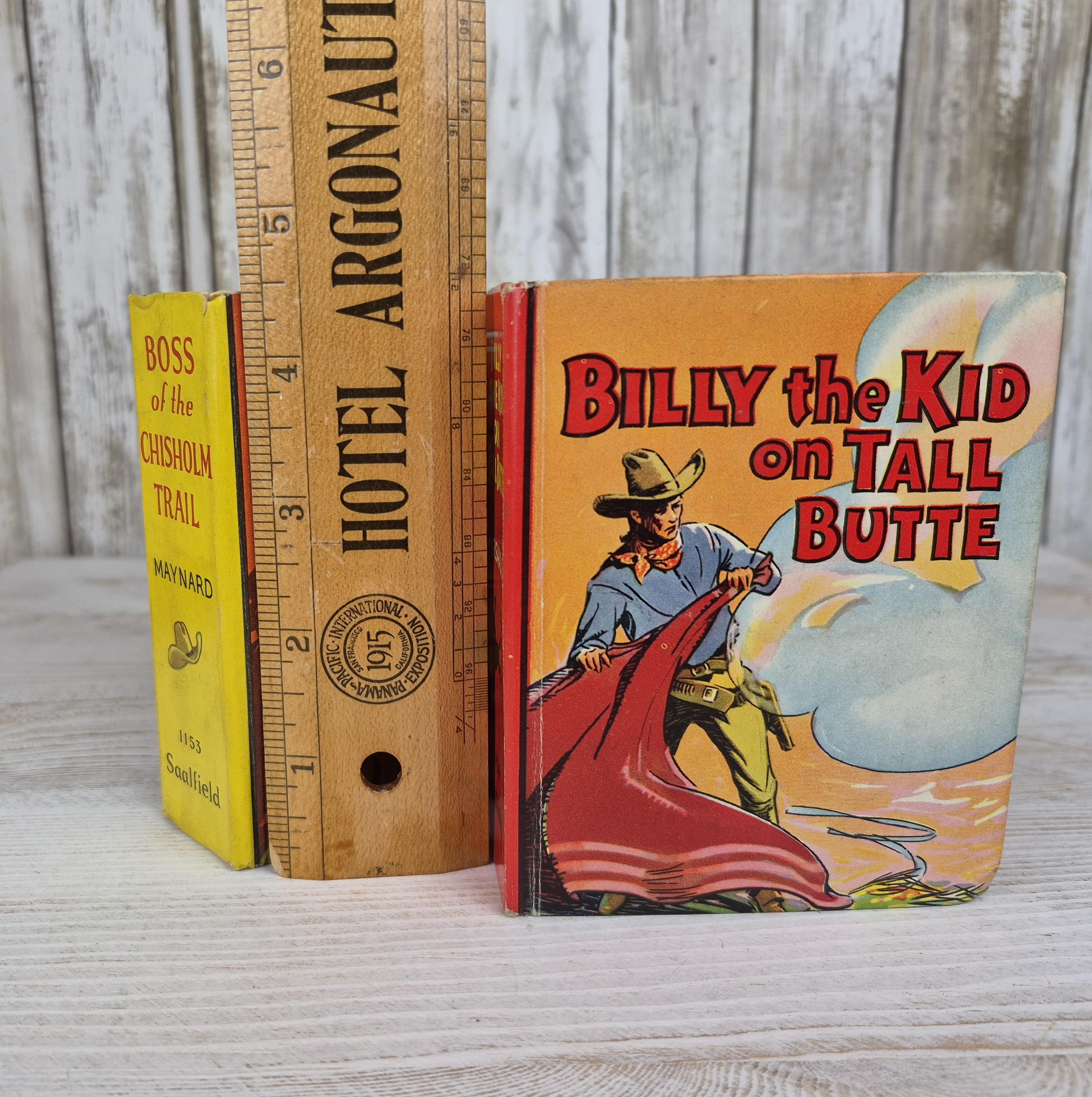 Whoa nelly! The bold red spine and action-packed cover show the legendary outlaw himself in full dramatic glory - cowboy hat, blue shirt, red bandana. Romanticized 1930s-style Billy the Kid adventure at its finest: gunfights, chases, and larger-than-life heroism that'll transport you right back to the Old West!